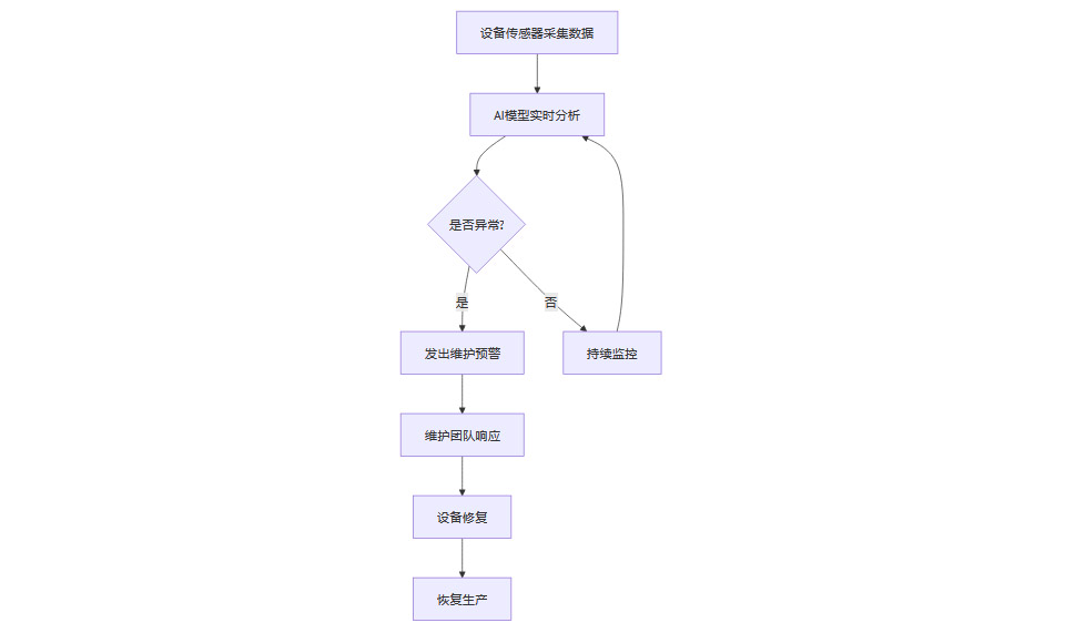 通过AI分析设备运行数据,提前预测故障,减少非计划停机70%,维护成本下降31%-40%,年节省数亿元。