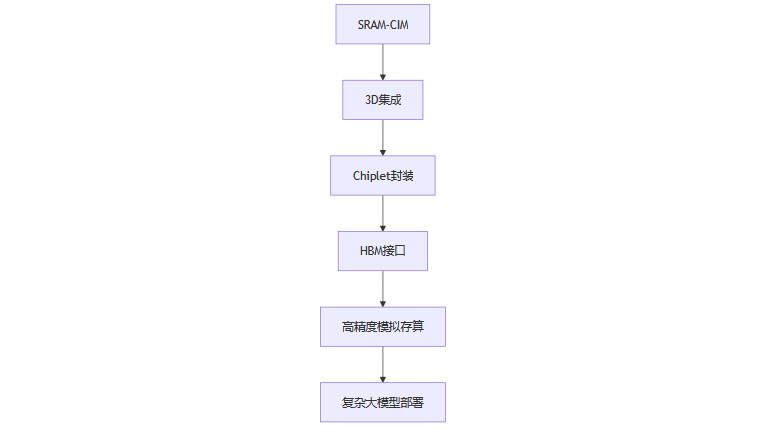存算一体技术正处于快速演进阶段。3D集成、Chiplet封装、HBM接口等新技术的引入,将进一步提升算力密度和带宽。模拟存算向8bit以上精度演进,支持更复杂的大模型部署,拓展了存算一体芯片的应用边界。