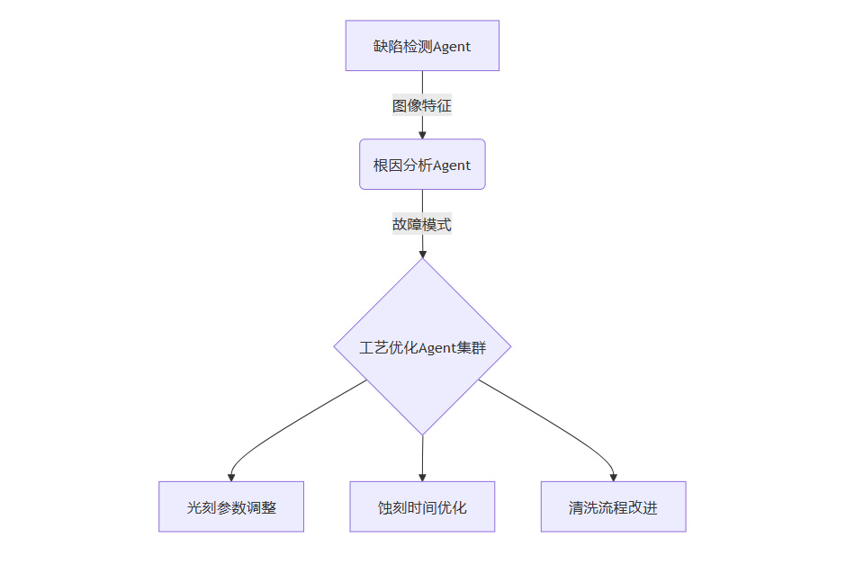 [缺陷检测Agent] --图像数据--> [根因分析Agent] --文本报告--> [工艺优化Agent]