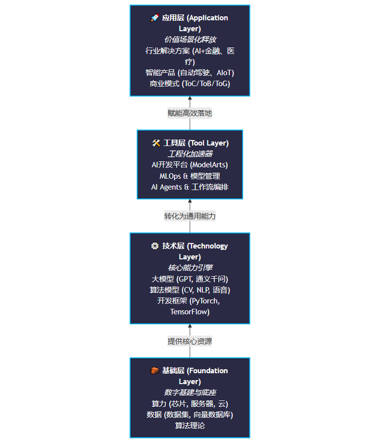 掌握这张四层架构蓝图,就是掌握了实现技术与业务闭环、推动AI产品从优秀走向卓越的关键钥匙。通过融合各层优势,关注实践案例与工程细节,我们才能更高效地驾驭AI产品的全生命周期,最终将技术的巨大潜力,转化为实实在在的商业增长和用户价值。
