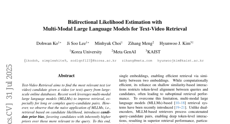 这种现象被称为**“候选项先验偏见”(Candidate Prior Bias)**。近期,一项由韩国科学院(KAIST)金炫宇教授团队领衔,联合韩国大学与Meta GenAI共同完成的研究,系统性地揭开了这个问题的面纱。他们发现,即便是当前最先进的多模态大语言模型,在进行文本-视频检索时,也严重受困于此。系统倾向于选择那些在训练数据中高频出现的文本或视频,而非与用户查询最相关的选项。