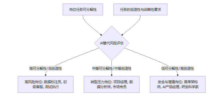 我们可以用一个简化的模型来评估AI对不同岗位的影响。