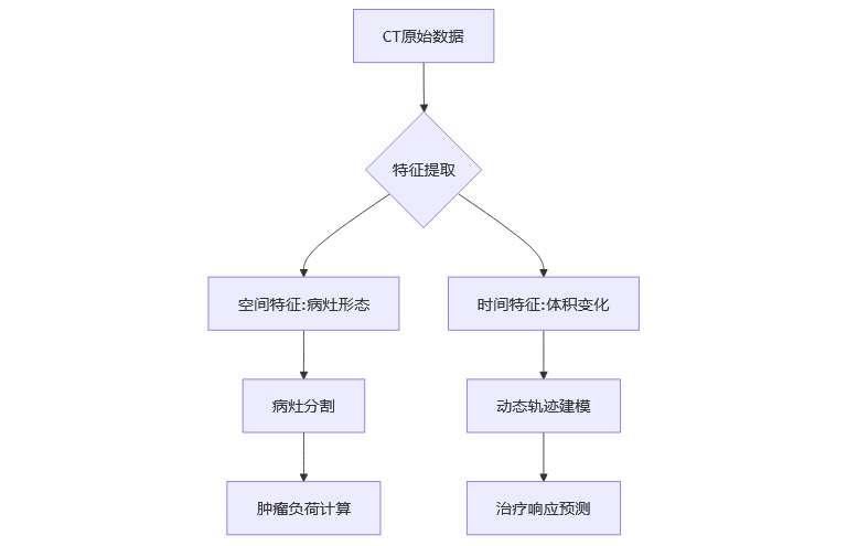 时间特征建模:AI追踪病灶体积随时间的变化,动态量化肿瘤负荷。