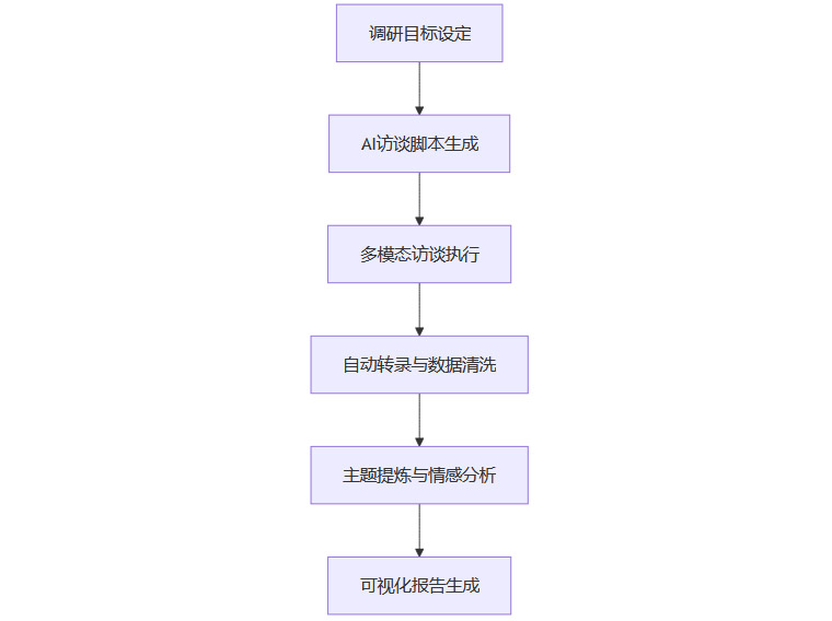 流程自动化:AI自动化问卷设计、数据采集、访谈转录、主题提炼等环节,极大提升效率。