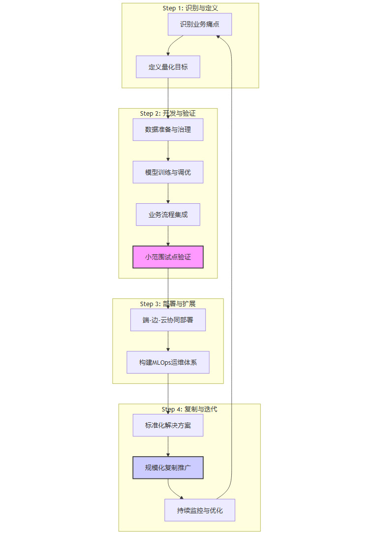 理论的先进性最终需要通过实践来检验。AI+产业互联网的落地并非一蹴而就,它需要一套清晰、务实的方法论。