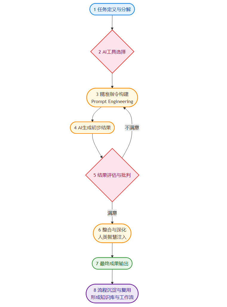 这个闭环流程,就是AI应用能力的具体体现。它强调了人类在环路中的主导作用,尤其是在评估、批判和整合环节。