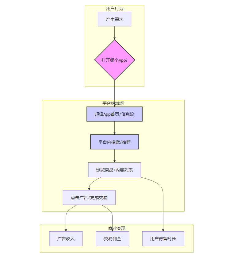 这个模式的核心在于,平台通过构建一个功能丰富、内容繁荣的“围墙花园”,将用户尽可能长时间地留在自己的App内。用户的每一次点击、每一次浏览,都构成了平台的商业价值。