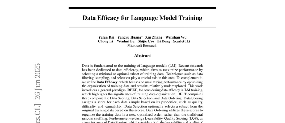 这项发表于2025年6月的DELT(Data Efficacy for Language model Training)方法,首次系统性地将“数据效能”引入AI训练流程。它像一位经验丰富的厨师长,不仅挑选最优质的食材(数据),更精心安排烹饪顺序(数据排列),让AI模型的学习效果提升高达65%。这不仅是技术上的创新,更是理念上的颠覆。