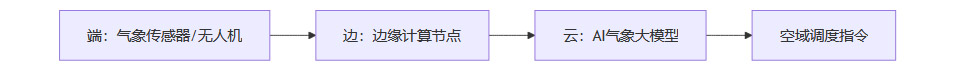 空天地一体协同:构建“端-边-云”三级监测网络(图1),小型气象站、无人机集群与5G-A网络联动,分钟级下发空域调度指令。