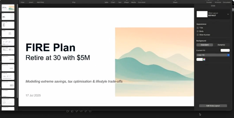 在“提前退休计划”任务中,ChatGPT Agent用20分钟生成一份PPT,内容涵盖税法、支出、投资建议等,结构完整,但图表以基础样式为主,缺乏动态趋势图和视觉对比卡片。