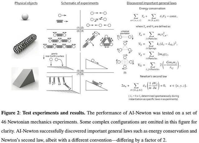 F=ma,而是一个相互关联的定律网络。例如,系统会同时发现F = d(mv)/dt(力的另一种定义)以及能量守恒定律dE/dt = 0。这表明它把握住了整个经典力学体系的内在结构。