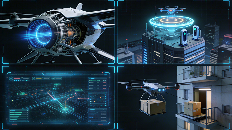 • 能源网络:构建高效的充换电网络,保障飞行器能源的快速补给,这是维持高频次运营的关键。