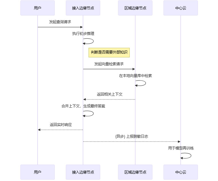 隐私数据不出域:原始的、敏感的文档或数据可以保留在企业本地,只将其生成的向量索引部署到边缘。这样,整个RAG过程都无需将原始敏感数据传输到公网,保障了数据主权与隐私合规。