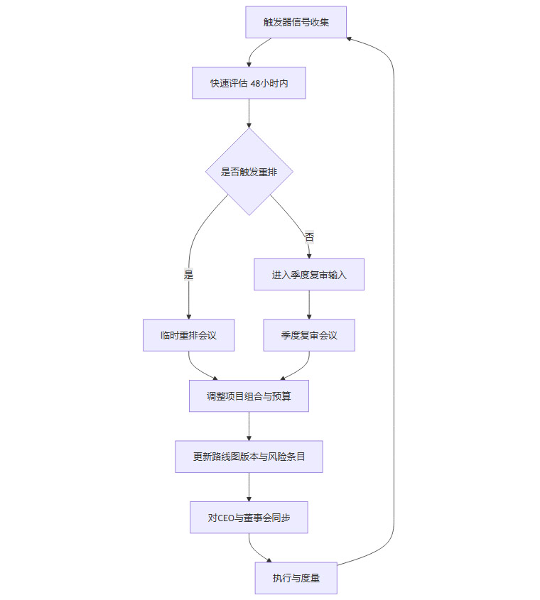 下面用流程图把季度复审与触发器重排串起来,落地时可直接当作会议与职责模板。