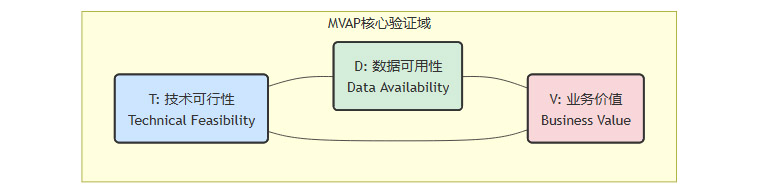 传统的MVP主要验证的是用户需求,即“用户是否需要这个功能?”。而MVAP的验证范围更为复杂和立体,它必须同时触及三个关键领域,我们称之为“T-D-V三位一体”。