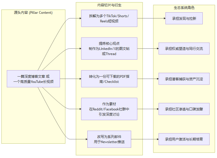 这是一种高效的内容复用策略,旨在通过一次核心内容的创作,衍生出适配多个平台的内容形态,实现“一次生产,多次分发,多重收益”。