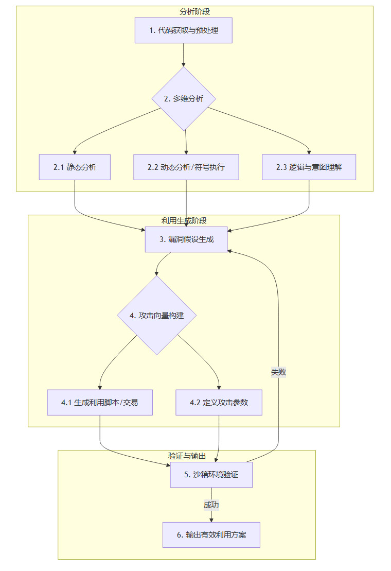 AI究竟是如何完成从一堆合约代码到一次成功资金转移的完整流程的?这背后是一套复杂但逻辑清晰的工作流,结合了大型语言模型的理解能力与传统软件分析技术的严谨性。