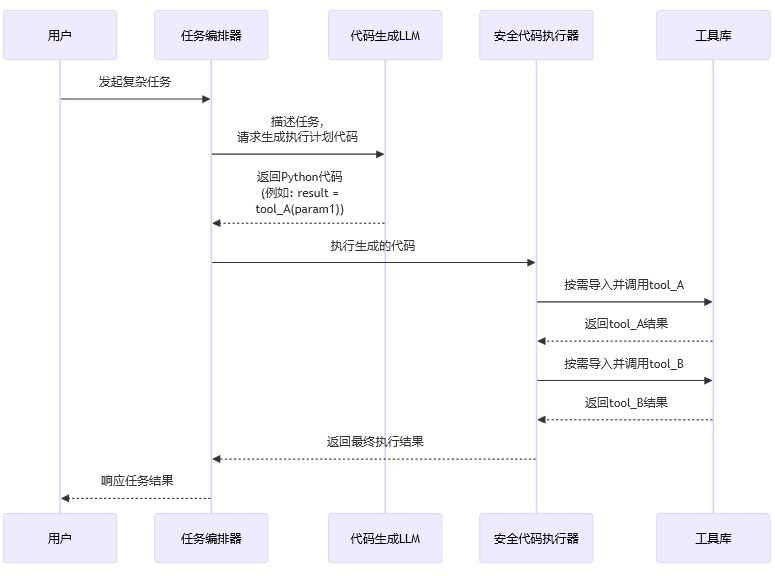 这是一种更先进的范式,它将LLM的角色从“直接调用者”转变为“代码生成者”。