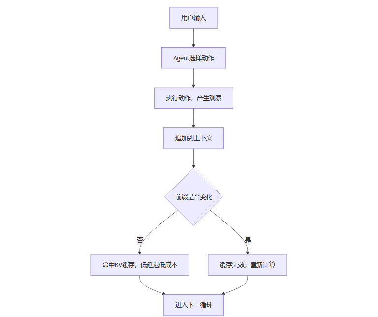 KV缓存通过存储模型前缀的中间状态,实现重复前缀的高效复用,极大降低首token生成时间(TTFT)和推理成本。对于Agent系统这种“长输入、短输出”的场景,KV缓存的优化价值尤为突出。