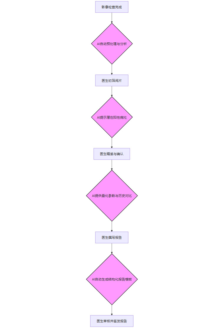 上图展示了AI在影像科阅片工作流中的理想嵌入点