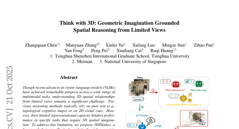 3DThinker的核心是让AI在思考时“画草图”,用内生的三维想象代替外部工具拼接,实现了从二维描述到三维推理的认知飞跃,是通往物理世界通用AI的关键一步。