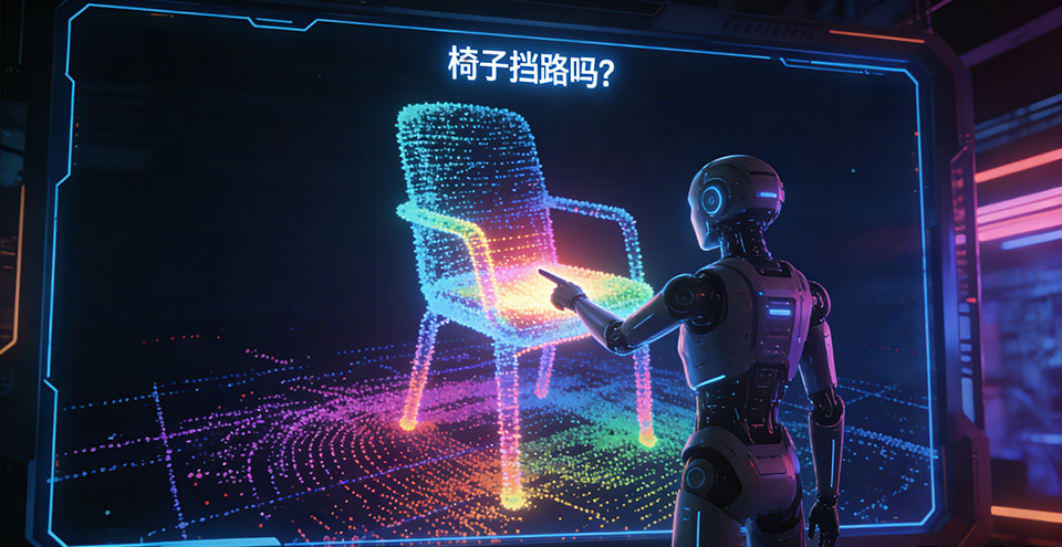 验证空间假设:当模型给出一个关于空间关系的答案时,我们可以通过检查其生成的点云,来判断它所依据的空间结构假设是否合理。例如,如果模型判断“椅子挡住了路”,其生成的点云中,椅子的位置和形态应该清晰地呈现在路径上。
