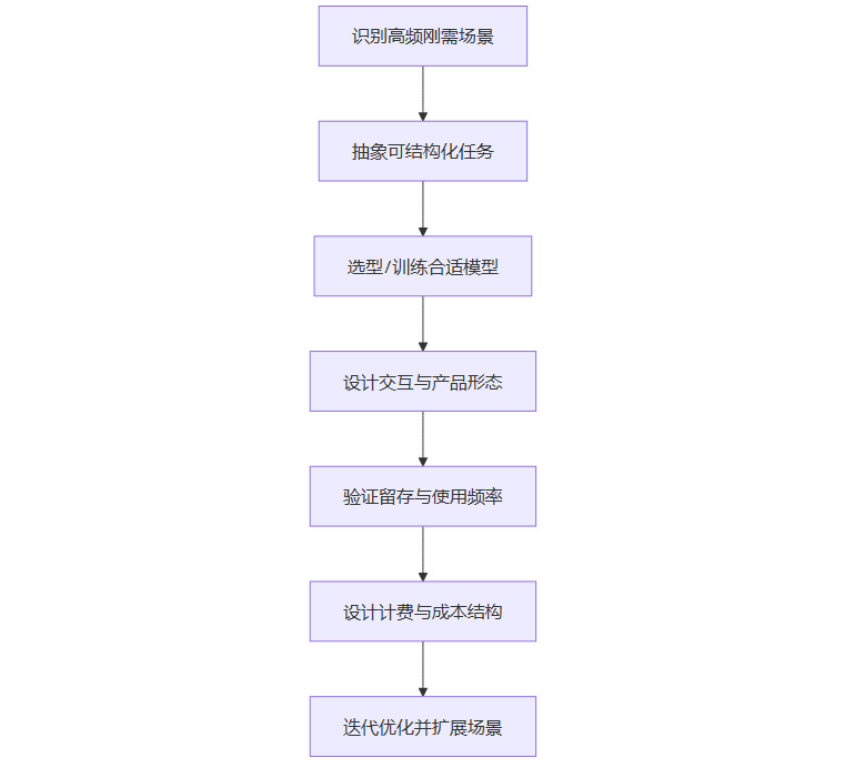 在三大赛道中,很多项目的共性问题是停留在“有一个模型,有一个 Demo”,却没有走完从用户需求到商业闭环的完整链路。可以用一个简化流程图刻画这条路径。