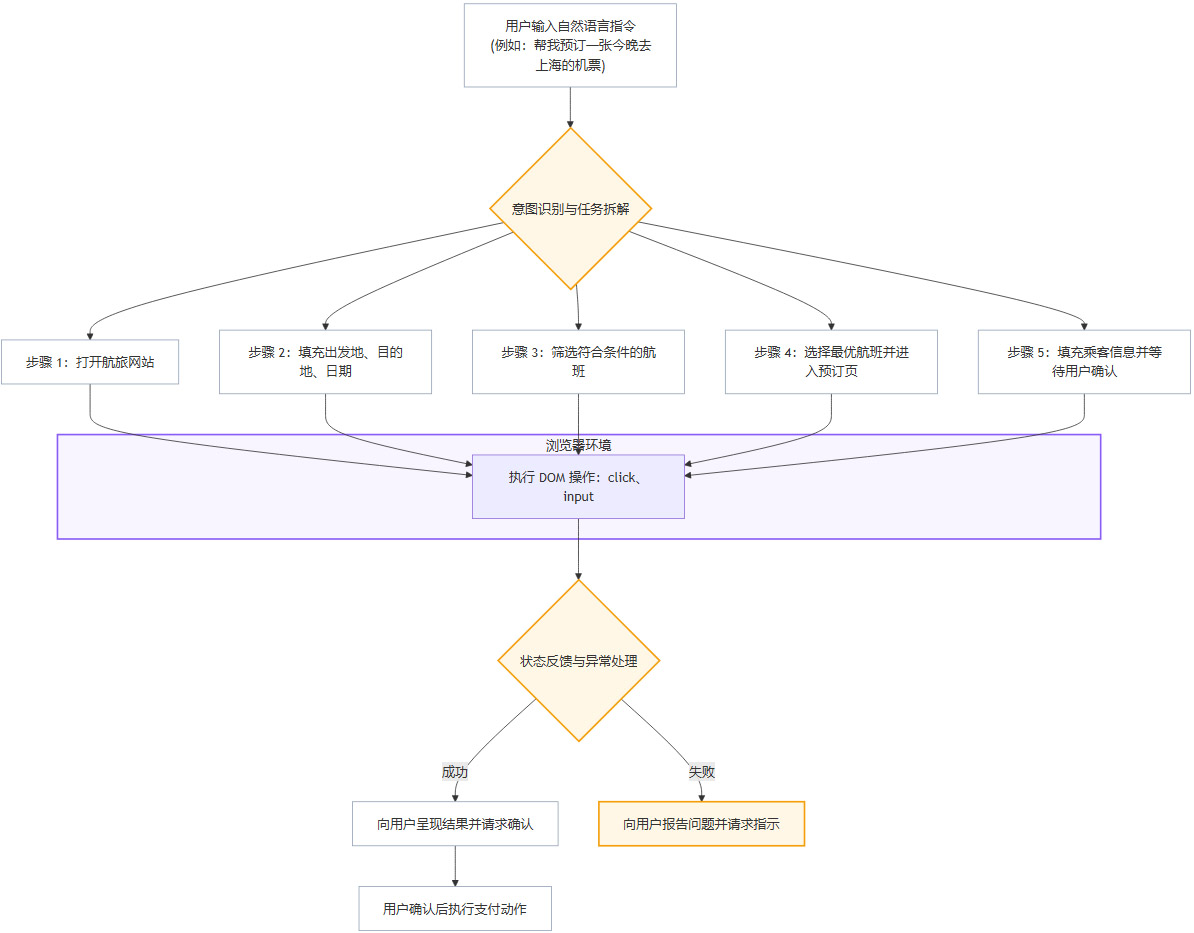这个流程的关键在于,Agent需要具备对网页DOM结构的深刻理解、多步任务的规划能力、以及应对动态页面变化和处理异常的鲁棒性。