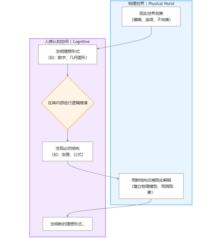 以数学为例,现实世界中并不存在绝对的“1”或完美的“圆”。“1+1=2”这个公式,其基础是人类首先发明了“1”和“2”这样离散、同一的抽象计数单位。这些概念是现实世界的高度理想化。