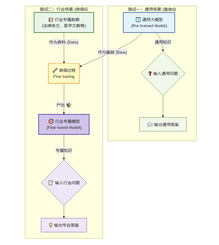 但通用大模型(如GPT-4)的“钉板”,是为解决通用问题设计的。当企业想用它来解决特定行业的问题时,就需要进行**“微调”(Fine-tuning)**。