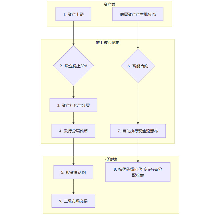智能合约驱动的现金流瀑布:ABS产品复杂的收益分配规则被编写成智能合约。当底层资产产生现金流时,智能合约会自动、精确地按照预设的优先级(Senior/Mezzanine/Equity)进行分配,杜绝了人为操作风险。