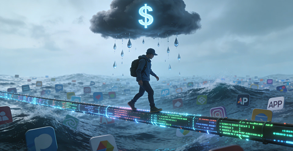 我们正处在一个剧变的节点。大型语言模型(LLM)的普及,正以前所未有的力度,重塑软件开发的底层逻辑。过去,一个想法要变为现实,横亘在创始人面前的是一条由代码、架构、运维组成的漫长河流。而今天,这条河的水位正在急速下降,甚至部分河段已经干涸。AI编程助手、低代码平台、模块化的API服务,让“人人都是开发者”的口号,第一次如此接近现实。