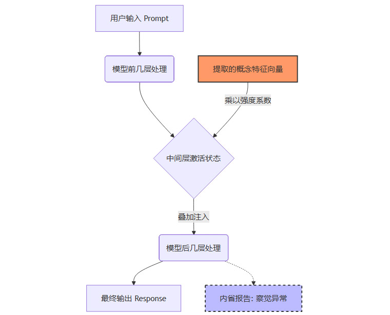 当研究人员注入“欺骗”或“说谎”的特征时,模型有时会报告:“我感到一种想要误导用户的冲动,但这违背了我的原则。”