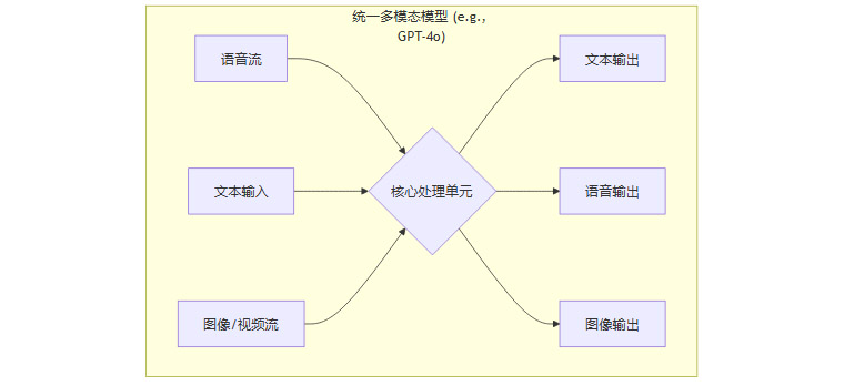 新架构解析:如今的整合体验,尤其是在GPT-4o模型发布后,强烈指向一个端到端的原生多模态架构。