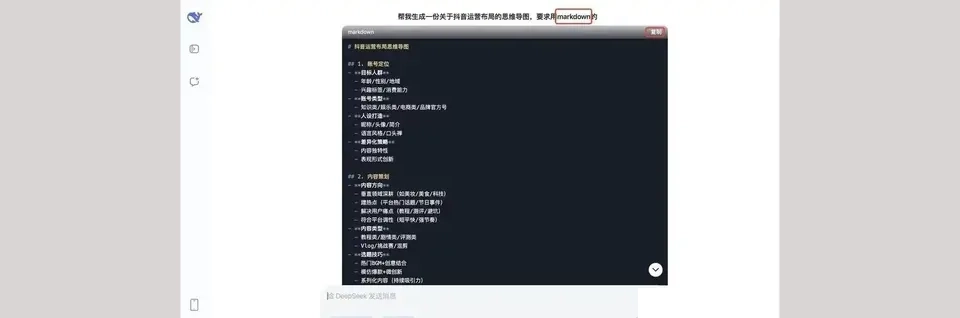生成Markdown内容:DeepSeek会根据你的输入生成一份清晰的Markdown格式的文字内容。这个过程非常高效,几乎省去了手动整理信息的工作。