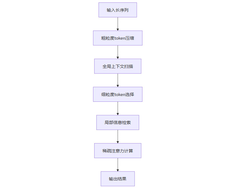 粗粒度token压缩:用于全局上下文扫描,快速捕捉长序列中的关键信息。