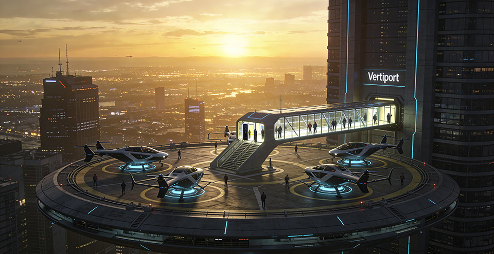 技术实现路径:eVTOL是实现这一场景的核心技术载体。其技术关键点包括高能量密度的电池技术、分布式电推进系统(DEP)的可靠性、高精度的自主飞行控制算法,以及确保安全的避障和冗余系统设计。此外,配套的起降场(Vertiport)网络规划、空中交通管理(ATM)系统以及商业运营模式的建立也至关重要。