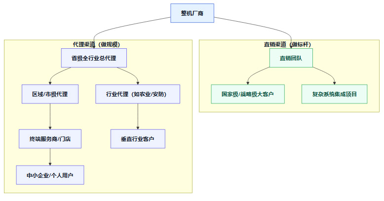 厂家直销。不再承担全面铺开市场的任务。其职能收缩,聚焦于服务国家级战略客户、处理技术极其复杂的系统集成项目,以及树立行业应用标杆。它的核心价值是“打样”和“攻坚”。