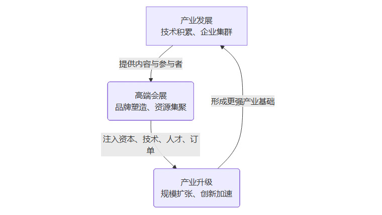会展反哺产业。会展平台通过高度集聚的资源,为产业带来订单、投资、人才、技术和品牌声誉,推动产业进入下一轮更高水平的增长。