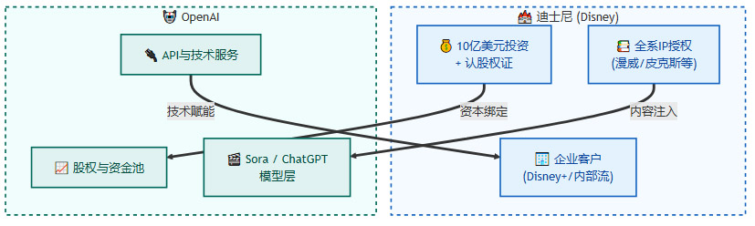 股权关系的确立:迪士尼成为OpenAI的股东,意味着它将分享OpenAI未来的成长红利。这激励迪士尼更主动地推动OpenAI技术的商业化落地,尤其是在其自身擅长的娱乐领域。
