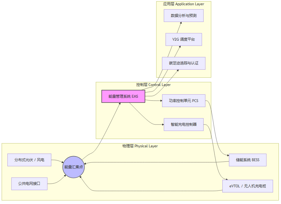 一个面向低空能源服务的微电网,其架构通常包含以下几个层面。