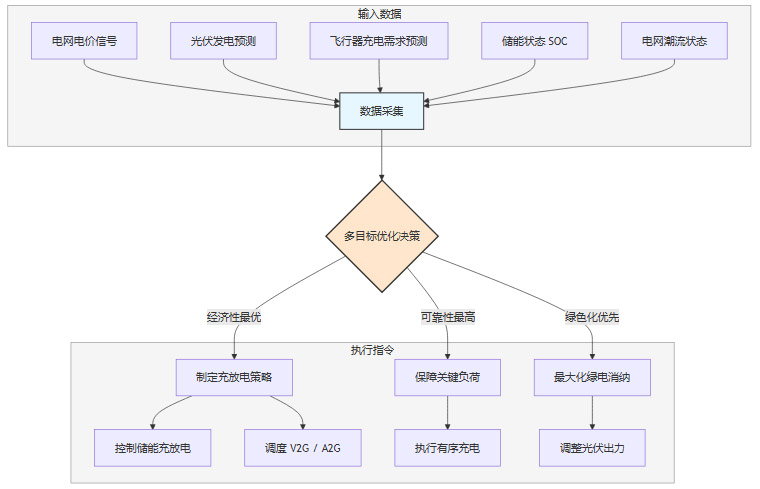 EMS是低空能源枢纽实现智能化的核心。其调度逻辑是一个复杂的多目标优化问题,需要综合考虑经济性、可靠性和绿色化。