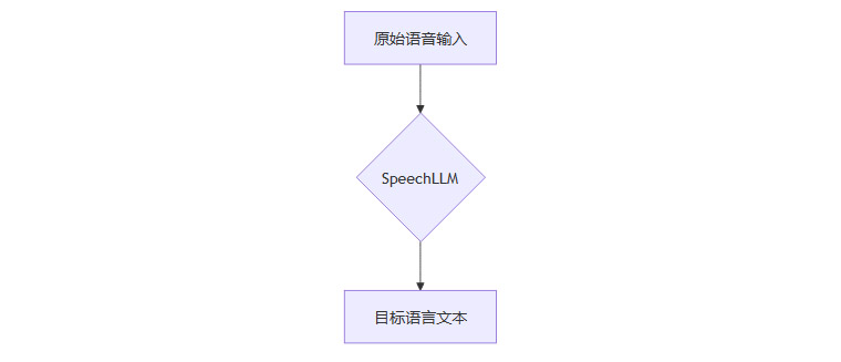 SpeechLLM 试图从根本上解决误差传播问题,它将整个翻译过程视为一个单一的、端到端的映射任务。