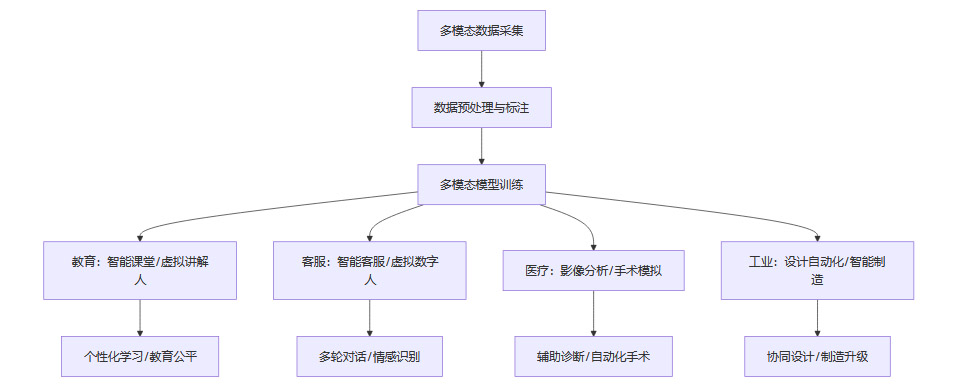 协同理解与自动化:在医疗影像分析、手术模拟等场景,多模态AI可实现语音、图像、文本的协同理解和生成,提升辅助诊断和手术自动化水平。