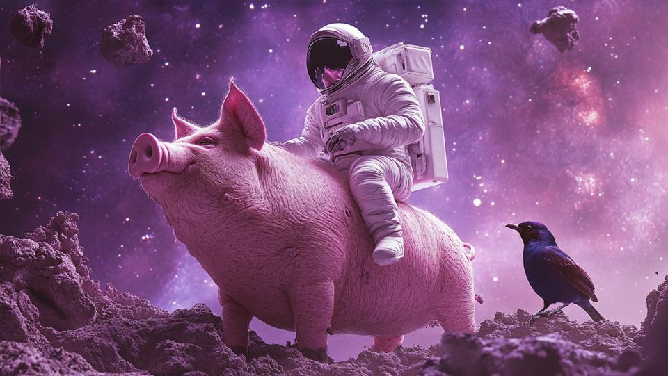 多角色、多主题场景:如“宇航员骑猪+戴礼帽的知更鸟”,SD3能准确分配空间关系,避免元素遗漏或错位。