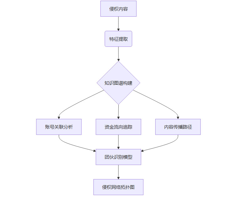 AI不仅打击单点侵权,更通过知识图谱分析锁定产业化侵权网络。通过账号关联分析、资金流向追踪、内容传播路径等多维数据,AI能够揭示背后操控多个账号的侵权团伙,追踪内容从原创到洗稿的演变过程,锁定洗稿工厂的运作链条。