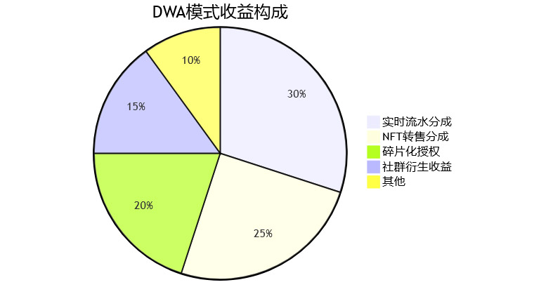DWA模式下,创作者的收益结构发生了根本性变化。创作者不仅获得平台广告分成和用户打赏,还能通过NFT转售、碎片化授权、社群衍生收益等多元渠道实现收益最大化,收益结构更加多元和可持续。