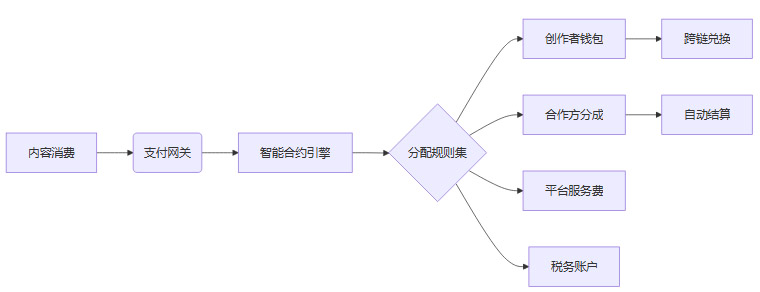 内容消费通过支付网关进入智能合约引擎,依据分配规则集自动分配至创作者钱包、合作方分成、平台服务费、税务账户,并支持跨链兑换与自动结算。