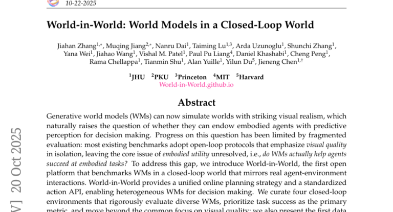 正是在这一背景下,约翰霍普金斯大学团队联合多所顶尖院校推出的World-in-World平台,为整个领域带来了一场深刻的范式革命。它旗帜鲜明地提出,必须将评估的重心从开环的视觉生成质量,彻底转向闭环的交互式任务表现。这不仅是一个新基准的发布,更是一次对世界模型本质价值的重新定义,迫使我们从关注“模型能看到什么”,转向关注“模型能做什么”。