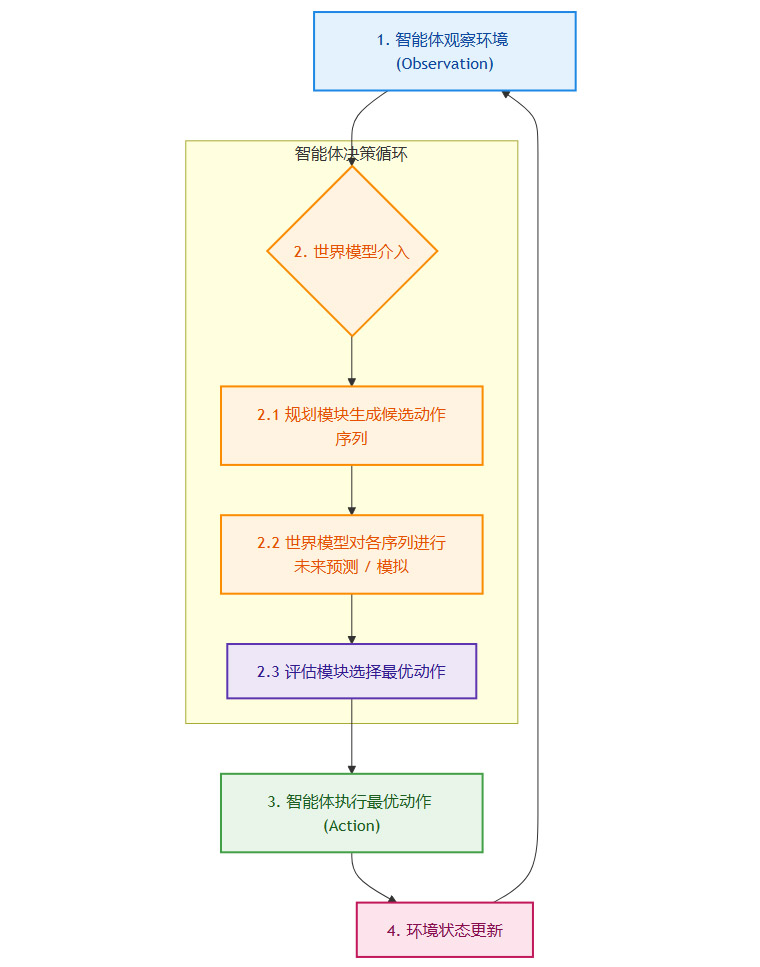 平台内置了一套通用的在线规划算法,使得任何接入的世界模型都可以被用作“规划模拟器”。这个过程模拟了人类在做决策时的“脑中演练”。
